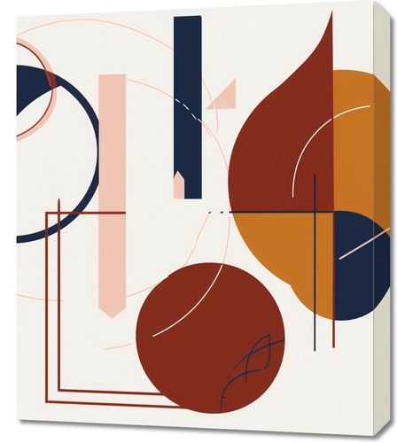 Obraz z serii minimalistyczne zatytułowany Harmonia Wnikliwa. Grafika ta przedstawia zestawienie geometrycznych kształtów w zdecydowanych, ale harmonijnie współgrających ze sobą kolorach – granacie, różu, i różnych odcieniach brązu. Obraz cechuje się czystą formą i prostotą, z subtelnie dodanymi detalami, takimi jak delikatne linie i lekkie cieniowanie, nadające głębi i złożoności.Tego rodzaju obraz będzie wyjątkowym akcentem w nowoczesnych biurach, współczesnych salonach, czy minimalistycznych galeriach sztuki. Doskonale odnajdzie się na ścianach, gdzie przeważają neutralne barwy, a jego silny graficzny charakter może stanowić kontrast lub dopełnienie dla prostoty i stonowanych barw wnętrza.