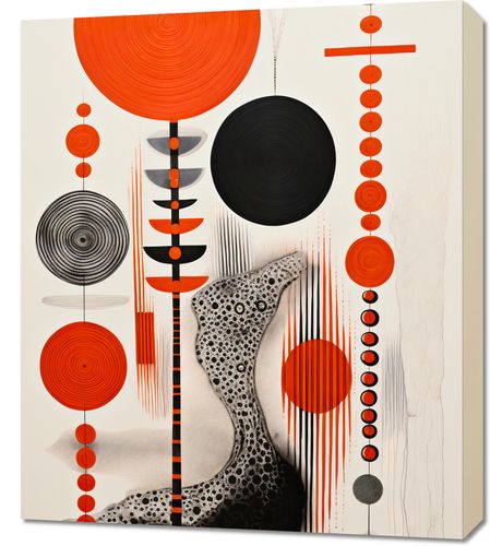 Obraz z serii abstrakcja zatytułowany Kontrastowy Kosmos. Fascynująca gra kontrastujących kolorów i kształtów, gdzie czerwone koła ożywiają monochromatyczne tło. Finezyjne tekstury i linie tworzą abstrakcyjny krajobraz przypominający kosmiczną przestrzeń. Czarne i czerwone elementy kontrastują ze sobą, dodając głębokości i wymiaru do kompozycji. Świetnie sprawdzi się w nowoczesnych biurach, galeriach sztuki oraz minimalistycznych salonach.