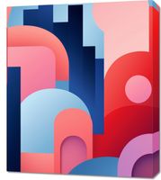Obraz z serii geometria zatytułowany Miasto Kolorów. Złożone z różnorodnych kształtów i tonacji, przedstawiające wyimaginowane miasto pełne zakamarków i mostów. Błękitne wieżowce kontrastują z ciepłymi różami i czerwieniami, tworząc uczucie ruchu i dynamiki. Gładkie linie i łuki wprowadzają uczucie spokoju w środku urbanistycznego zgiełku. Doskonale odnajdzie się w nowoczesnych biurach oraz w przestrzeniach artystycznych galerii.
