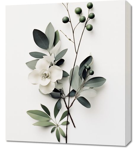 Obraz z serii wnętrza zatytułowany Papierowy Kwiat. Ten obraz przedstawia delikatną kompozycję wykonaną z papieru, która odwzorowuje naturę z zadziwiającą dokładnością. Wykwintna papierowa magnolia w towarzystwie subtelnego listowia i jagód, wszystkie w spokojnych, pastelowych tonach, tworzą obraz pełen elegancji i delikatności. Idealny dla przestrzeni, które cenią sobie minimalizm i spokój, jak skandynawskie wnętrza, pracownie projektowe czy przestrzenie relaksacyjne, gdzie taka forma sztuki może wprowadzić wyciszającą atmosferę i dodać wnętrzu subtelnej, artystycznej nuty.