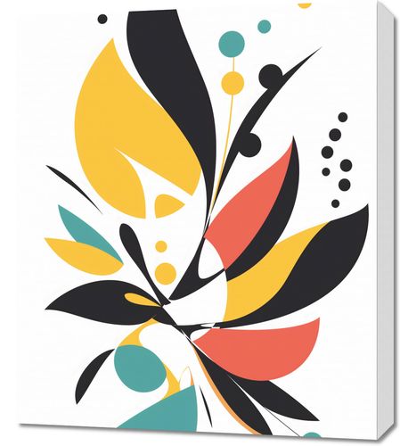 Obraz z serii minimalistyczne zatytułowany Radosny Bujak. To żywiołowe i radosne przedstawienie abstrakcyjnej roślinności, które łączy odważne kształty i przemyślaną paletę barw. Dominują tu intensywne odcienie żółcieni i czerwieni, zestawione z spokojnymi akcentami turkusu i czerń głębokiej nocy, przełamane żółtymi i niebieskimi akcentami w formie kropek, tworząc kompozycję pulsującą życiem i energią. Ten obraz to idealne rozwiązanie dla przestrzeni, które potrzebują odrobiny optymizmu i witalności. Doskonale sprawdzi się w przestronnych salonach, kreatywnych pracowniach, a nawet w kącikach dla dzieci, gdzie jego żywe kolory i dynamiczne formy mogą pobudzać wyobraźnię i dodawać energii.