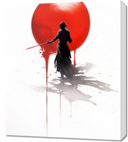 Obraz z serii motywy wschodnie zatytułowany Samotny Samuraj przedstawia postać w tradycyjnym japońskim stroju, samuraja, w dynamicznej pozie z mieczem, z potężnym, czerwonym słońcem w tle. Design wykorzystuje silne kontrasty kolorystyczne - biel i czerń z akcentami czerwieni, aby stworzyć dramatyczną i potężną wizualizację. Przedstawienie samuraja w akcji z rozpryskami tuszu naokoło podkreśla ruch i energię, a jednocześnie oddaje hołd tradycyjnym technikom japońskiego malarstwa atramentem. Ten obraz to doskonały wybór dla miłośników japońskiej kultury i sztuk walki, idealny do wnętrz nowoczesnych jak i tych o bardziej klasycznym charakterze.