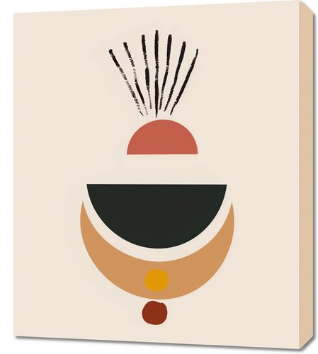 Obraz z serii boho zatytułowany Spójna Refleksja.Grafika ukazuje abstrakcyjną kompozycję geometrycznych kształtów w spójnej, ciepłej palecie barw, sugerującą delikatność i równowagę. Cechą charakterystyczną są wydłużone, smukłe linie wychodzące z półkola na górze, które mogą przypominać promienie słońca czy roślinne motywy. Ten obraz doskonale wpasuje się w nowoczesne i minimalistyczne przestrzenie, takie jak jadalnie, salony, a nawet kreatywne przestrzenie pracy, gdzie może stanowić spokojny punkt skupienia i inspirować do przemyśleń.