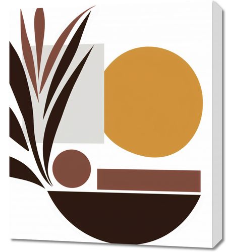 Plakat z serii minimalistyczne zatytułowany Stylizacja Roślin. Prezentuje on stylizowaną kompozycję roślinnych elementów i geometrycznych kształtów, wykorzystując ciepłą paletę brązów, beżów i głęboką ochrę. Proste formy tworzą spokojną, ale wyraźną grafikę, która wprowadza poczucie równowagi i spokoju. Ten obraz doskonale nada się do wnętrz w stylu mid-century modern, skandynawskich lub innych minimalistycznych przestrzeni, gdzie natura jest kluczowym elementem dekoracyjnym. Jego ziemiste barwy mogą dodać ciepła i naturalnego charakteru do każdego pomieszczenia, od salonu po spokojny kącik czytelniczy.