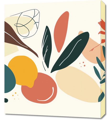 Obraz z serii minimalistyczne zatytułowany Taneczne Wizje. Grafika ta prezentuje zmysłową i swobodną kompozycję roślinnych motywów, abstrakcyjnych kształtów oraz płynnych linii, tworząc harmonijne połączenie kolorów takich jak terakota, musztarda i różne odcienie zieleni. Całość wywołuje uczucie lekkości i naturalnej równowagi. Ten obraz znakomicie wkomponuje się w przestrzenie, które cenią bliskość z naturą i sztukę o organicznych formach. Idealny do przestronnych salonów, spokojnych sypialni, jak również jako element ożywiający w minimalistycznych biurach. Może być też doskonałym uzupełnieniem galerii sztuki lub kawiarni, gdzie tło dla relaksujących rozmów tworzą właśnie takie subtelne dzieła.