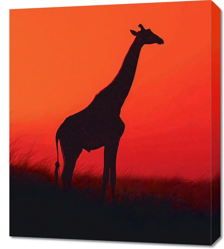Obraz z serii natura zatytułowany Żyrafa w Czerni. Przedstawia majestatyczną sylwetkę żyrafy na tle zachodzącego słońca. Intensywny czerwony kolor nieba tworzy dramatyczne tło dla czarnej sylwetki, która wyłania się wśród wysokich traw sawanny. Subtelny gradient czerwieni przywołuje ciepło afrykańskiego słońca i dzikość naturalnego środowiska. Obraz idealnie oddaje esencję dzikiej przyrody i będzie pięknym dodatkiem do każdego wnętrza, przyciągając wzrok i inspirując do marzeń o podróżach. Doskonale pasuje do salonów w stylu etno, przestrzeni publicznych związanych z podróżami oraz pokojów o tematyce przyrodniczej.