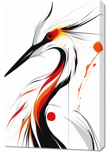 Obraz z serii motywy wschodnie zatytułowany Bocian to dynamiczna i ekspresyjna interpretacja bociana, wykonana w stylu nowoczesnej abstrakcji. Ptak przedstawiony jest za pomocą ostrych, płynnych linii i silnych kontrastów kolorystycznych, gdzie biel, czerń i intensywne odcienie czerwieni przenikają się, tworząc uczucie ruchu i energii. Ogień w oku bociana i płomienne akcenty na jego upierzeniu sugerują pasję i życiową siłę, a spontaniczne plamy i kropki dodają dziełu artystycznego zacięcia. Obraz emanuje siłą i wolnością, idealny do wnętrz, które chcą wyrazić dynamizm i siłę natury, doskonały dla przestrzeni pełnych energii jak nowoczesne biura, kreatywne pracownie, lub jako wyrazisty element dekoracyjny w domowym salonie.