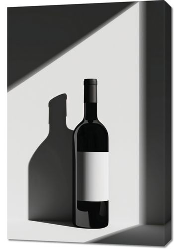 Obraz z serii wnętrza zatytułowany Butla Wina . Przedstawia minimalistyczny i elegancki wizerunek butelki wina. Kompozycja jest prosta i nowoczesna, z butelką umieszczoną na jasnym tle z ostrymi liniami cienia, które dodają głębi i zainteresowania wizualnego. Cienie są ostre i wyraźne, co sugeruje, że światło padające na butelkę jest mocne i bezpośrednie. Butelka ma klasyczną etykietę bez żadnych detali, co nadaje całemu obrazowi wyrafinowany charakter. Użycie kontrastu między ciemnymi tonami butelki a jasnym tłem podkreśla formę i sylwetkę przedmiotu, skupiając uwagę na jego zarysie. Taki obraz mógłby być świetnym dodatkiem do wnętrz urządzonych w stylu minimalistycznym lub współczesnym, a także pasowałby do przestrzeni, gdzie celebruje się kulturę wina.