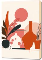 Plakat z serii minimalistyczne zatytułowany Ciepłe Gesty. Grafika składa się z eleganckiej kombinacji abstrakcyjnych form, stylizowanych wazonów i roślinnych motywów, w których dominują ciepłe odcienie czerwieni, różu oraz neutralne tony. Całość tworzy przyjemną dla oka i zrelaksowaną kompozycję, która łączy elementy sztuki nowoczesnej z naturalnymi akcentami. Ten obraz będzie pięknym dodatkiem do wnętrz o spokojnej, relaksującej atmosferze, jak również do przestrzeni, które cenią prostotę i elegancję w designie. Może znaleźć swoje miejsce w jasnych salonach, biurach, a nawet w recepcjach hotelowych, gdzie może dodać odrobinę ciepła i estetycznego spokoju.