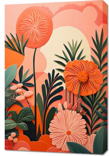 Obraz z serii natura zatytułowany Koralowy Ogród. Zachwycające, koralowe kwiaty wyrastają na pierwszy plan, podkreślane delikatnymi białymi liniami tworzącymi ich unikalne wzory. Tło w odcieniach pastelowego różu i kremu dodaje kompozycji głębi i ciepła. Złożoność i różnorodność roślin w obrazie dodaje mu nuty ekstrawagancji i wyjątkowości. Świetnie sprawdzi się w modnych kawiarniach, butikach z odzieżą damską oraz w przestrzeniach spa o relaksującym charakterze.