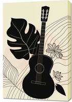 Obraz z serii minimalistyczne zatytułowany Melodyjność Natury przedstawia czarną sylwetkę gitary ukulele, która wyróżnia się na tle w pastelowych odcieniach beżu z delikatnymi akcentami botanicznymi. Naturalne kształty liści monstery i subtelne linie florystycznych wzorów tworzą relaksujące, ale jednocześnie żywe tło, które idealnie komplementuje centralny motyw muzyczny. Ta artystyczna kompozycja oddaje hołd zarówno muzyce, jak i naturze, wprowadzając do wnętrza atmosferę spokoju i harmonii. Idealnie nadaje się do przestrzeni wypoczynkowych, studiów muzycznych lub jako dekoracyjny akcent w salonie miłośnika muzyki.