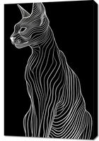 Obraz z serii abstrakcja zatytułowany Minimalny Kontur prezentuje minimalistyczny i stylowy wizerunek kota, wykonany w technice linii konturowych. Czyste, białe linie o zróżnicowanej grubości tworzą sylwetkę kota na jednolitym, czarnym tle, dając efekt elegancji i prostoty. Kompozycja skupia się na gracją i wyrafinowaną postawę kota, z wyraźnie zaznaczonymi uszami, oczami i kształtem ciała. Całość tworzy hipnotyzujący obraz, który jest zarazem współczesny i ponadczasowy, idealny dla miłośników minimalizmu, a także dla tych, którzy cenią sobie kreatywne podejście do tradycyjnego portretowania zwierząt. Obraz ten świetnie wkomponuje się w nowoczesne wnętrza, stanowiąc subtelny, ale wyrazisty akcent dekoracyjny.