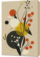 Obraz z serii minimalistyczne zatytułowany Naturaleza. Grafika prezentuje wyjątkowe połączenie abstrakcyjnych kształtów i naturalnych elementów w ciepłej palecie barw. Organiczne formy roślin przeplatają się z geometrycznymi kształtami, tworząc złożoną i intrygującą kompozycję pełną życia i dynamiki. Czerwienie, żółcie, czernie i beże komponują się w harmonijną całość, przypominającą abstrakcyjny pejzaż lub bukiet. Idealnie nadaje się do wnętrz, gdzie sztuka łączy się z naturą, tworząc spokojne, ale pełne energii przestrzenie. Doskonały do salonu, biura, lub każdej przestrzeni, która pragnie wprowadzić elementy sztuki inspirowanej naturą.