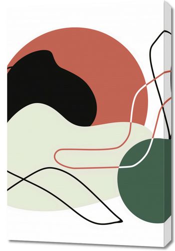 Obraz z serii minimalistyczne zatytułowany Płaszczyzny. Praca ta to kompozycja złożona z płynnych linii i geometrycznych kształtów w stonowanej palecie kolorystycznej, zawierającej odcienie czerwieni, czerni, zieleni i pastelowej mięty. Abstrakcyjne formy na plakacie splatają się, tworząc zrównoważoną i spokojną całość.Ten obraz będzie świetnie pasował do współczesnych wnętrz, które cenią prostotę i czystość formy. Może stanowić elegancki akcent w biurze, salonie czy też minimalistycznym foyer. Harmonijne połączenie kolorów i form sprawi, że będzie to doskonały wybór dla przestrzeni, gdzie design jest świadomie ograniczony, ale pełen charakteru.