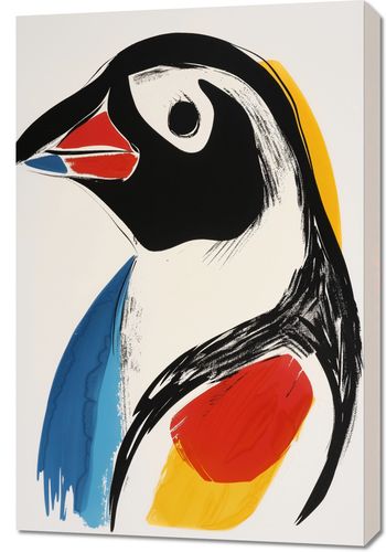 Obraz z serii abstrakcja zatytułowany Portret Ptaka. Prezentuje on stylizowany obraz ptaka, być może maskonura, z charakterystycznym dużym okiem i kolorowym dziobem. Artysta użył odważnych, geometrycznych kształtów i intensywnych barw, aby uchwycić esencję ptaka w prosty, ale wpadający w oko sposób. Duże bloki czerni, błękitu, czerwieni i żółci są zastosowane z lekkością pociągnięć pędzla, co nadaje dziełu lekkości i dynamiki. Ten obraz jest świadectwem tego, jak minimalizm może w pełni wyrazić piękno natury, będąc jednocześnie współczesnym i śmiałym elementem w każdym wnętrzu, od domowych przestrzeni po nowoczesne biura.