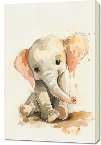 Obraz z serii wnętrza zatytułowany Siwy Słonik to czarująca akwarela przedstawiająca małego, siwego słonia z dużymi, wyrazistymi oczami i rozłożystymi uszami w odcieniach różu. Delikatność i ciepło ilustracji wydobywają ujmującą niewinność młodego słonia. Rozpryski akwareli wokół postaci dodają dynamiki i lekkości, sugerując radosną zabawę i beztroskę. Ten obraz wprowadza atmosferę spokoju i radości, idealnie nadają się do ozdobienia przestrzeni dziecięcej, takiej jak pokoje maluchów, przedszkola, sale zabaw czy kąciki czytelnicze w bibliotekach. Jego urokliwy obraz może inspirować młode umysły do marzeń i pozytywnego myślenia.