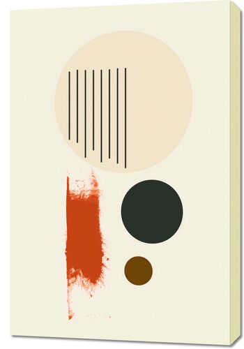 Plakat z serii boho zatytułowany Symetryczna Struna.Grafika przedstawia zrównoważoną kompozycję z surowymi elementami geometrycznymi i organicznym pociągnięciem pędzla. Kremowe tło rozświetla duże koło z rytmicznie rozmieszczonymi pionowymi liniami, które mogą symbolizować struny instrumentu lub elementy urbanistyczne. Intensywne maznięcie koloru w dolnej części obrazu dodaje energii i kontrastu, natomiast umieszczone obok czarne i brązowe kółka wprowadzają wrażenie głębi. Obraz idealnie uzupełni wnętrza w duchu minimalizmu i modernizmu, takie jak stylowe salony, gabinety, czy współczesne przestrzenie biurowe, gdzie może stanowić element kontrastujący z prostotą otoczenia.