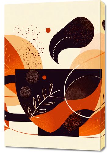 Obraz z serii minimalistyczne zatytułowany Wachlarz Ciepła. Ta kompozycja charakteryzuje się bogatymi, ciepłymi barwami jesieni, łącząc brązy, pomarańcze i czernie z delikatnymi liśćmi i abstrakcyjnymi kształtami, co razem tworzy dynamiczną, ale harmonijną całość.Ten obraz będzie idealnym dodatkiem do przestrzeni, które chcą wnieść trochę ciepła i artystycznego charakteru do swojego wnętrza. Jego ziemiste barwy i wzory mogą przyciągnąć oko w salonie, jadalni, czy współczesnej sypialni, wnioskując poczucie komfortu i naturalnego piękna.