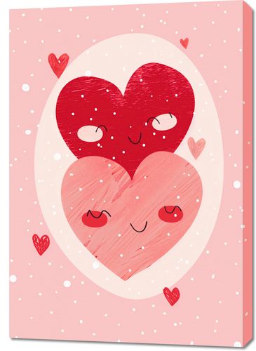 Obraz z serii abstrakcja zatytułowany ''Ciepło Serca''. Przedstawia on dwie zakochane postacie w kształcie serc, które przytulają na tle pastelowego różu. Większe serce z zamkniętymi oczami delikatnie otacza mniejsze, tworząc wrażenie bezpieczeństwa i miłości. Otoczenie jest pełne małych serduszek i kropek, przypominających lekko opadający śnieg lub konfetti, dodając magii i radości. Całość sprawia wrażenie bajkowej i kojącej, idealnej do wyrażenia uczuć i roztaczania atmosfery miłości.Ten obraz będzie pięknym akcentem w każdym pomieszczeniu, gdzie chcemy dodać odrobiny ciepła i uczuciowej bliskości, jak dziecięcy pokój, sypialnia czy nawet przestrzeń rodzinna. Jego słodki design i pozytywne przesłanie mogą także świetnie sprawdzić się jako prezent dla bliskiej osoby.