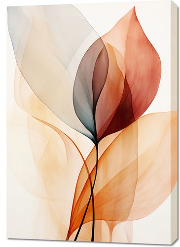 Obraz z serii wnętrza zatytułowany Eteryczne Liście. Delikatne, prześwitujące kształty liści w odcieniach beżu, czerwieni i szarości wibrują w eterycznym tańcu, przypominając delikatność i efemeryczność natury. Połączenie cienistych linii i przezroczystych warstw tworzy poczucie głębi i multidymensjonalności. Ten abstrakcyjny portret przyrody emanuje spokojem i medytacyjnym ukojeniem. Doskonale wpasuje się w nowoczesne biura projektowe, minimalistyczne apartamenty oraz w przestrzeniach dedykowanych relaksowi i odnowie ducha.