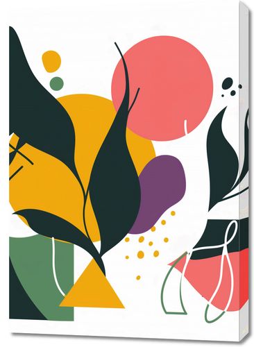 Obraz z serii minimalistyczne zatytułowany Kolorowa Abstrakcja Botaniczna. Prezentuje on żywą grę kolorów i kształtów, z akcentami organicznych form roślin i geometrycznych figur na tle. Zestawienie soczystych barw, takich jak żółć, purpura i różne odcienie zieleni, tworzy kompozycję pełną energii i życia. Ten obraz doskonale uzupełni przestrzeń, w której chce się wprowadzić odrobinę natury w nowoczesnym wydaniu. Będzie idealnym dodatkiem do jasnych, ekologicznych wnętrz, kreatywnych przestrzeni pracy, czy nawet klasycznych salonów, które poszukują śmiałego, ale nie dominującego elementu dekoracyjnego.