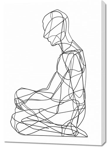 Obraz z serii minimalistyczne zatytułowany Liniowa Kontemplacja.Grafika przedstawia sylwetkę siedzącej postaci ujętej w płynne, dynamiczne linie. Rysunek, stworzony z zaledwie kilku ciągłych konturów, tworzy wrażenie głębi i ruchu, jednocześnie pozostając subtelnie oszczędny i wyrafinowany. Ta forma sztuki line art jest doskonała do nowoczesnych przestrzeni, które cenią prostotę i symboliczną ekspresję. Obraz może być punktem skupienia w medytacyjnych zakątkach domu, strefach relaksu, bibliotekach, czy minimalistycznych biurach, zachęcając do chwili zadumy i wewnętrznego spokoju.