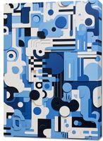 Obraz z serii geometria zatytułowany Niebieski Labirynt. Złożona mozaika geometrycznych kształtów i różnorodnych tekstur w odcieniach niebieskiego i bieli układa się w fascynującą kompozycję przypominającą miasto z lotu ptaka. Kontrasty głębokich granatów z pastelowymi błękitami oraz gładkimi i wypukłymi powierzchniami dodają głębi i trójwymiarowości temu dziełu. Świetnie sprawdzi się w nowoczesnych biurach, przestrzeniach designerskich oraz galeriach sztuki współczesnej.