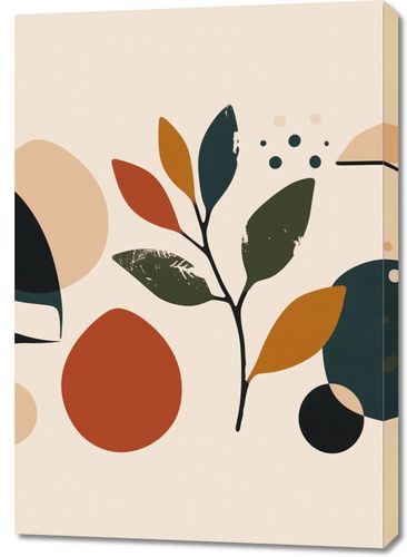 Obraz z serii minimalistyczne zatytułowany Ogród Melancholii. Grafika ta przedstawia kolekcję stylizowanych liści i kształtów, które tworzą spokojną i harmonijną kompozycję w ciepłej palecie barw - od głębokiego granatu po delikatne odcienie beżu i ochry, z akcentami w kolorze terrakoty. Każdy element graficzny, choć uproszczony, jest bogaty w detale, co nadaje plakatowi subtelną głębię i teksturę.Ten obraz będzie pięknie wyglądał w wnętrzach, gdzie naturalne materiały są na czele - takich jak drewno, kamień lub lniane tkaniny. Jego prosta, ale elegancka estetyka sprawia, że jest to idealny dodatek do salonu, jadalni, a nawet kuchni, wprowadzając do pomieszczenia spokój i równowagę.
