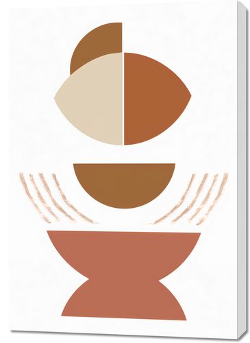 Obraz z serii boho zatytułowany Pastelowa Hipnoza. Łączy prostotę kształtów geometrycznych z subtelnością pastelowych barw, tworząc obraz o niemal hipnotycznym uporządkowaniu. W centrum kompozycji znajduje się dualistyczny kształt, który balansuje między symetrią a asymetrią, otoczony przez półkola i linie, przywołujące na myśl delikatne promienie słońca. Paleta kolorystyczna ogranicza się do ciepłych odcieni beżu, brązu i rdzawego różu, co dodaje dziełu wyrafinowanej subtelności. Doskonale odnajdzie się jako centralny punkt w jasnych, przestronnych wnętrzach, gdzie może stać się tłem dla głębokich refleksji, lub jako element dekoracyjny w minimalistycznie urządzonych pomieszczeniach, dodając im ciepła i elegancji.