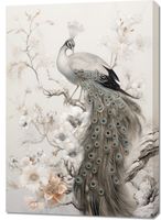Obraz z serii wnętrza zatytułowany Pawia Gracja. Ta grafika przedstawia majestatycznego pawia spoczywającego na gałęzi, otoczonego przez delikatne kwiaty magnolii. Kunsztownie oddane detale piór i kwiatów w pastelowej palecie barw tworzą uczucie spokoju i harmonii. Obraz ten jest idealny dla miłośników piękna natury i sztuki, doskonale nadaje się do wnętrz o klasycznej i eleganckiej estetyce, takich jak salon, sypialnia, a także jako wyjątkowy element dekoracyjny w spa lub miejscach relaksacji.