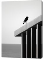 Obraz z serii pejzaże zatytułowany Samotna Odchłań. Ten skrajnie minimalistyczny obraz przedstawia pojedynczego ptaka spoczywającego na czystej, białej krawędzi konstrukcji, z subtelnym tłem nieskończonego morza. Zdjęcie w skali szarości, gdzie tylko kontury ptaka wyróżniają się na jednolitym tle, wywołuje poczucie spokoju i introspekcji. Idealny dla nowoczesnych przestrzeni biurowych i domowych, które pragną oddać hołd prostocie i skupieniu, a także jako przemyślany akcent w galeriach sztuki czy minimalistycznych salonach.