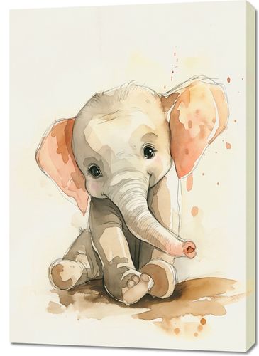 Obraz z serii wnętrza zatytułowany Siwy Słonik to czarująca akwarela przedstawiająca małego, siwego słonia z dużymi, wyrazistymi oczami i rozłożystymi uszami w odcieniach różu. Delikatność i ciepło ilustracji wydobywają ujmującą niewinność młodego słonia. Rozpryski akwareli wokół postaci dodają dynamiki i lekkości, sugerując radosną zabawę i beztroskę. Ten obraz wprowadza atmosferę spokoju i radości, idealnie nadają się do ozdobienia przestrzeni dziecięcej, takiej jak pokoje maluchów, przedszkola, sale zabaw czy kąciki czytelnicze w bibliotekach. Jego urokliwy obraz może inspirować młode umysły do marzeń i pozytywnego myślenia.