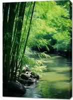 Obraz z serii natura zatytułowany Spokój Bambusów. Ukazuje on idylliczny zakątek przyrody, gdzie zielone pędy bambusa delikatnie zginają się nad błogim, spokojnie płynącym strumieniem. Gra światła i cienia na liściach bambusa tworzy wrażenie głębi i spokoju, zaś szemrząca woda dodaje uczucie świeżości i czystości. Ten obraz oddaje piękno i spokój odosobnionego zakątka natury, jest więc idealny dla przestrzeni relaksacyjnych takich jak spa, pokoje do medytacji lub jako ukojenie w zgiełku codzienności w domowych wnętrzach. To doskonała dekoracja dla tych, którzy pragną wprowadzić element natury i harmonii do swojego otoczenia.