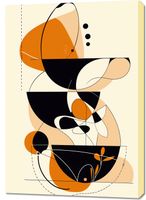 Obraz z serii minimalistyczne zatytułowany Taneczne Kręgi.Ta grafika przyciąga uwagę dynamicznym zastosowaniem form i kolorów. Czarne i pomarańczowe elementy na jasnym tle sprawiają, że kompozycja tętni życiem, podkreślając witalność i ruch. Abstrakcyjne kształty krążą wokół siebie w harmonijnym tańcu, tworząc wizualną symfonię, która może być interpretowana na wiele sposobów. Można doszukać się w nich zarówno organicznych form, jak i bardziej strukturalnych, architektonicznych motywów, co dodaje tej pracy wielowymiarowości. Wydaje się być idealnym uosobieniem nowoczesności z nutą klasyki, mogącym pasować do wielu współczesnych przestrzeni.