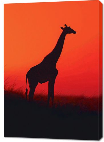 Obraz z serii natura zatytułowany Żyrafa w Czerni. Przedstawia majestatyczną sylwetkę żyrafy na tle zachodzącego słońca. Intensywny czerwony kolor nieba tworzy dramatyczne tło dla czarnej sylwetki, która wyłania się wśród wysokich traw sawanny. Subtelny gradient czerwieni przywołuje ciepło afrykańskiego słońca i dzikość naturalnego środowiska. Obraz idealnie oddaje esencję dzikiej przyrody i będzie pięknym dodatkiem do każdego wnętrza, przyciągając wzrok i inspirując do marzeń o podróżach. Doskonale pasuje do salonów w stylu etno, przestrzeni publicznych związanych z podróżami oraz pokojów o tematyce przyrodniczej.