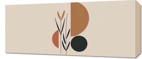 Obraz z serii boho zatytułowany Harmonijna Więź. Grafika jest esencją prostoty i natury uchwyconej w geometryczne formy. Linie przypominające delikatne źdźbła traw czy gałązki łączą się z organicznymi kształtami w odcieniach brązu, pomarańczy i czerni, tworząc wyrafinowany, naturalny motyw. Ta redukcja do najprostszych elementów wywołuje spokój i zrównoważenie. To dzieło doskonale odnajdzie się w przestrzeniach, gdzie dominuje spokój i prostota. Idealnie pasuje do minimalistycznych biur, eleganckich pokoi gościnnych lub jako wyrafinowany element dekoracyjny w modnych restauracjach. Może też dodać subtelnej, naturalnej elegancji do skandynawsko urządzonych mieszkań.
