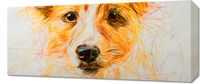 Obraz z serii wnętrza zatytułowany Uroczy Gość przedstawia twarz uroczego psa, stworzoną z setek dynamicznych, kolorowych linii. Jego oczy pełne są życia, a ciepła paleta barw, od żółtego po czerwony, nadaje temu dziełu szczególnego ciepła i energii. Szkicowe kreski nie tylko oddają fakturę futra, ale także wibrującą osobowość psa. Ten obraz idealnie sprawdzi się jako uroczy, artystyczny akcent w przestrzeniach takich jak kawiarnie, kliniki weterynaryjne lub domy miłośników zwierząt, dodając im serdeczności i oryginalności.