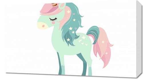 Obraz z serii wnętrza zatytułowany Jednorożec Marzeń. Na tej zachwycającej ilustracji przedstawiono pastelowego jednorożca, którego turkusowe ciało pokryte jest subtelnymi gwiazdkami, a jego miękka, różowa grzywa delikatnie opada. Zamknięte oczy i łagodny uśmiech dodają uroku tej mitycznej istocie, wprowadzając element spokoju i radości. Obraz idealnie nadaje się do pokoju dziecięcego lub innej przestrzeni przeznaczonej dla dzieci, tworząc atmosferę bajkowej krainy pełnej czarów i cudów. Delikatne kolory i uroczy wzór są doskonałe, aby rozbudzić wyobraźnię i dodać uroku każdemu wnętrzu, zachęcając do marzeń i optymizmu.