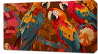 Obraz z serii abstrakcja zatytułowany Kolorowe Ary ukazuje grupę majestatycznych papug ara, których pióra w odcieniach głębokiego błękitu, gorącej pomarańczy i intensywnej czerwieni są ukazane z imponującym detalami. Ptaki są umieszczone na tle tropikalnych kwiatów i liści, tworząc barwną kompozycję, która przykuwa wzrok i przenosi obserwatora w odległe, egzotyczne krajobrazy. Dynamika i życie płynące z tego dzieła sprawiają, że jest ono idealnym wyborem dla pomieszczeń pełnych energii i pasji, takich jak kreatywne przestrzenie pracy, eklektyczne salony lub przestronne lobby hotelowe. Obraz ten celebruje różnorodność i piękno natury, przemawiając do tych, którzy cenią sobie przyrodę i kolor w swoim otoczeniu.