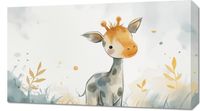 Obraz z serii wnętrza zatytułowany Mała Żyrafka. Uroczy obraz przedstawia młodą żyrafę o łagodnym spojrzeniu, wyłaniającą się z akwarelowej mgły pastelowych barw. Delikatne krople farby i subtelne linie tworzą atmosferę czystości i spokoju, nadając dziełu ciepły i relaksujący nastrój. Ten obraz, emanujący dziecięcą niewinnością i ciekawością świata, będzie idealnym dodatkiem do przestrzeni dziecięcej, takiej jak pokoje maluchów, przedszkola lub miejsca oczekiwania w placówkach pediatrycznych, zachęcając małych i dużych do marzeń i odkrywania piękna przyrody.