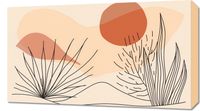 Obraz z serii boho zatytułowany Miękka Roślinność. Obraz przedstawia proste, lecz eleganckie rośliny pustynne na tle abstrakcyjnych, miękkich form i kolorów. Całość kompozycji opiera się na spokojnych odcieniach beżu, brązu oraz głębokiego terrakoty, co przywodzi na myśl ciepło i suchość pustynnego krajobrazu. Ten obraz świetnie sprawdzi się w wnętrzach o neutralnej kolorystyce, dodając im charakteru i ciepła. Idealnie nadaje się do salonu, przestrzeni wypoczynkowych lub biura, gdzie wprowadzi elementy natury i harmonii.