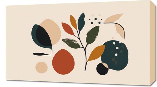 Obraz z serii minimalistyczne zatytułowany Ogród Melancholii. Grafika ta przedstawia kolekcję stylizowanych liści i kształtów, które tworzą spokojną i harmonijną kompozycję w ciepłej palecie barw - od głębokiego granatu po delikatne odcienie beżu i ochry, z akcentami w kolorze terrakoty. Każdy element graficzny, choć uproszczony, jest bogaty w detale, co nadaje plakatowi subtelną głębię i teksturę.Ten obraz będzie pięknie wyglądał w wnętrzach, gdzie naturalne materiały są na czele - takich jak drewno, kamień lub lniane tkaniny. Jego prosta, ale elegancka estetyka sprawia, że jest to idealny dodatek do salonu, jadalni, a nawet kuchni, wprowadzając do pomieszczenia spokój i równowagę.