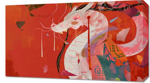 Obraz z serii motywy wschodnie zatytułowany Orientacyjny Smok, przedstawia kreatywną i nowoczesną interpretację tradycyjnego azjatyckiego smoka. Użyto bogatej palety czerwieni i pomarańczy, aby nadać energię i pasję scenie, a delikatne przerywane linie i formy abstrakcyjne dodają dziełu dynamiki i współczesnego charakteru. Smok, przedstawiony z otwartą paszczą i dzikim spojrzeniem, wydaje się ryczeć, a jego ciało płynnie przepływa przez kompozycję, tworząc wrażenie ruchu i siły. Tło, na którym pojawiają się subtelne nawiązania do wschodniej architektury i symboliki, wzmacnia kulturowe korzenie motywu. Ten obraz będzie idealnym uzupełnieniem współczesnych przestrzeni, które czerpią z tradycji i łączą je z nowoczesnym designem, takich jak salony w stylu fusion, przestrzenie kulturowe, a także restauracje i salony, gdzie chce się wprowadzić element orientalnego ducha.