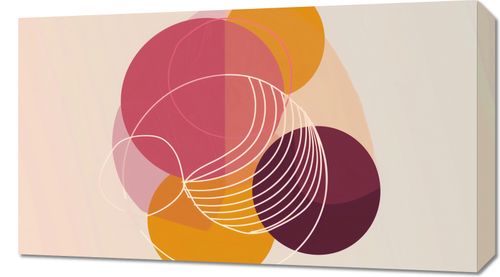 Obraz z serii minimalistyczne zatytułowany Przenikanie Ciepła. Grafika ta eksploruje delikatne gradacje kolorów i złożoność form poprzez nakładanie się i przenikanie okręgów. Subtelne linie tworzą głębię, a paleta ciepłych czerwieni, różu i złota przypomina o zmianach światła o zachodzie słońca. Obraz ten idealnie pasuje do nowoczesnych wnętrz, które cenią sobie ciepło i delikatność w designie, takich jak salon spa, joga studio lub medytacyjna przestrzeń domowa. Jego spokojna aura może także wzbogacić eleganckie biuro lub poczekalnię, tworząc atmosferę spokoju i ciepła.
