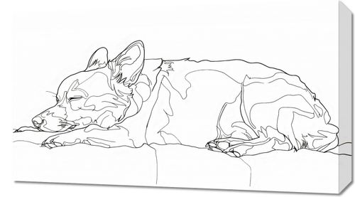 Obraz z serii minimalistyczne zatytułowany Śpiący Psiak.To delikatna linia rysunku, która za pomocą prostych, płynnych linii uchwyciła spokojny moment odpoczynku psa. Obraz sprawia wrażenie zarówno delikatnego, jak i pełnego ekspresji, z akcentami na szczegółach takich jak kształt uszu, fałdy skóry i zrelaksowana postawa psa. Ten rodzaj sztuki może dodać elegancji i prostoty każdemu wnętrzu, pasując szczególnie do nowoczesnych i minimalistycznych przestrzeni, takich jak salony, biblioteki czy gabinety. Jego uniwersalny charakter sprawia, że będzie się dobrze komponował w różnorodnych dekoracjach, od industrialnych po skandynawskie, dodając odrobinę domowego ciepła i uroku.