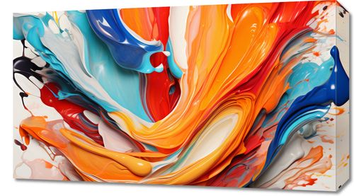 Obraz z serii abstrakcja zatytułowany Taneczne Fale. Wybuch jaskrawych barw, które splatają się w nieprzewidywalnych wzorach, przypominających taniec płynnych farb. Intensywne odcienie niebieskiego, czerwonego i pomarańczowego kontrastujące z delikatnymi akcentami bieli, dodają obrazowi dynamiki i życia. Świetnie sprawdzi się w nowoczesnych galeriach sztuki, studiach projektowych oraz przestrzeniach kreatywnych.