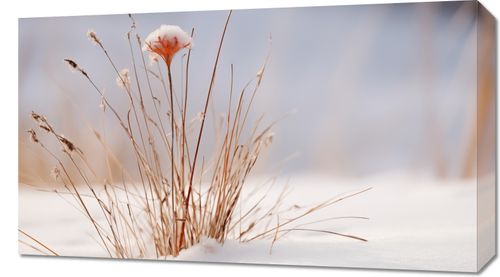 Obraz z serii natura, zatytułowany Zima w Detalach. Delikatna kompozycja przedstawiająca trawę i pojedynczy kwiat, które przebijają się przez śnieg, uchwycone w subtelnych, ciepłych tonach o poranku. Subtelne odcienie i miękkość światła nadają temu obrazowi uczucie spokoju i ciszy zimowego krajobrazu. Idealny do wnętrz, które cenią sobie subtelność i naturalność, wnosząc elementy świeżości i czystości zimowego poranka. Doskonale sprawdzi się w salonach, sypialniach, czy przestrzeniach wspólnych, oferując wyciszający efekt wizualny.
