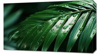 Obraz z serii natura zatytułowany Żywa Łagodność, przedstawia szczegółowe zbliżenie na liście palmy w odcieniach żywej zieleni, oświetlone promieniami słońca przenikającymi przez ich szpary. Gładkie i lśniące liście, z delikatnymi kroplami wody na ich powierzchni, tworzą poczucie ruchu i dynamiki, podczas gdy ich kontrastujące linie i formy wnoszą element struktury i elegancji. Delikatne światło i cienie na liściach, w połączeniu z bogatą paletą zieleni, wywołują uczucie spokoju oraz bliskości z naturą. Ta fotograficzna kompozycja mogłaby doskonale uzupełnić wnętrza, które cenią naturalność i organiczną estetykę, takie jak eko-salon, przestrzeń do jogi lub biura koncentrujące się na zrównoważonym rozwoju i ekologicznych inicjatywach.
