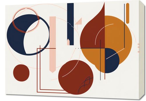 Obraz z serii minimalistyczne zatytułowany Harmonia Wnikliwa. Grafika ta przedstawia zestawienie geometrycznych kształtów w zdecydowanych, ale harmonijnie współgrających ze sobą kolorach – granacie, różu, i różnych odcieniach brązu. Obraz cechuje się czystą formą i prostotą, z subtelnie dodanymi detalami, takimi jak delikatne linie i lekkie cieniowanie, nadające głębi i złożoności.Tego rodzaju obraz będzie wyjątkowym akcentem w nowoczesnych biurach, współczesnych salonach, czy minimalistycznych galeriach sztuki. Doskonale odnajdzie się na ścianach, gdzie przeważają neutralne barwy, a jego silny graficzny charakter może stanowić kontrast lub dopełnienie dla prostoty i stonowanych barw wnętrza.
