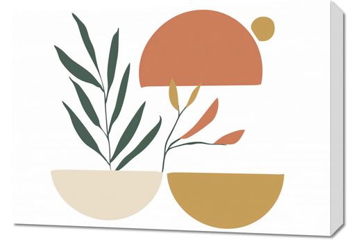 Obraz z serii boho zatytułowany Przekwit Tonacji.Obraz łączy prostotę z naturą, przedstawiając abstrakcyjne roślinne formy na tle geometrycznych kształtów. Paleta kolorów w tonacjach ziemi i spokojnych zielonych oraz pomarańczowych odcieniach, razem z kształtem przypominającym wschodzące słońce, wywołuje poczucie spokoju i nowego początku. Dzieło to idealnie nadaje się do przestrzeni, w których dominuje jasność i naturalność, takich jak skandynawskie wnętrza, miejsca odpoczynku lub przestrzenie pracy, które cenią sobie prostotę i harmonię. Może wprowadzić do pomieszczenia elementy natury w subtelny, uporządkowany sposób.